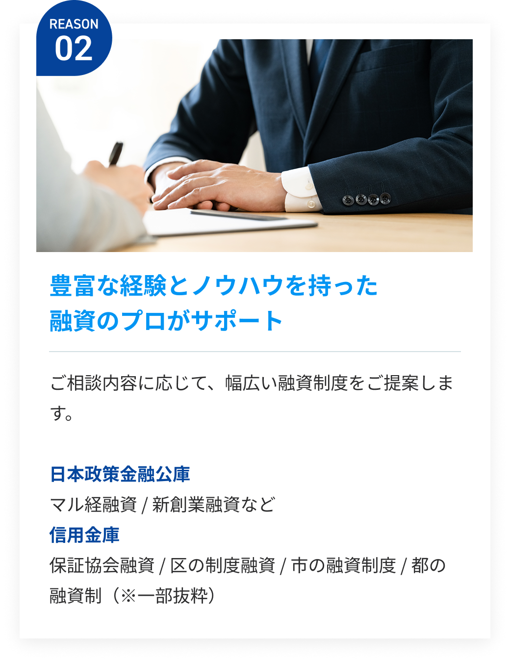 - 例えば、協調融資により政策公庫2,000万、民間銀行1,000万といった申込みが可能です。